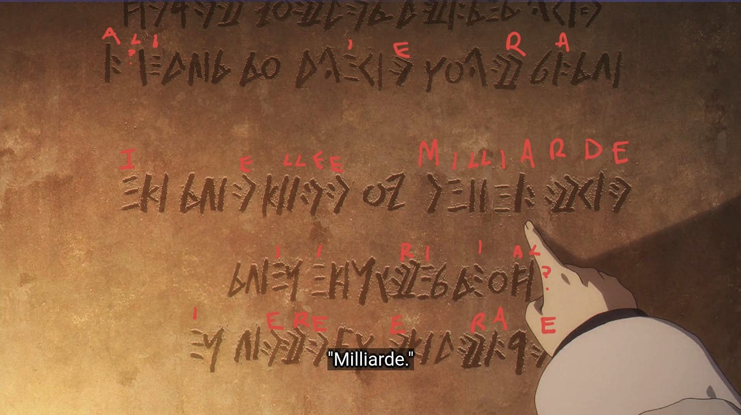 I recently started watching Frieren as well and love everything about that anime. So glad to see another fan appreciate it, and even decode the Elvish script! The latest ep was really good. Reading your group’s translation of the tablet made me grin ear to ear.