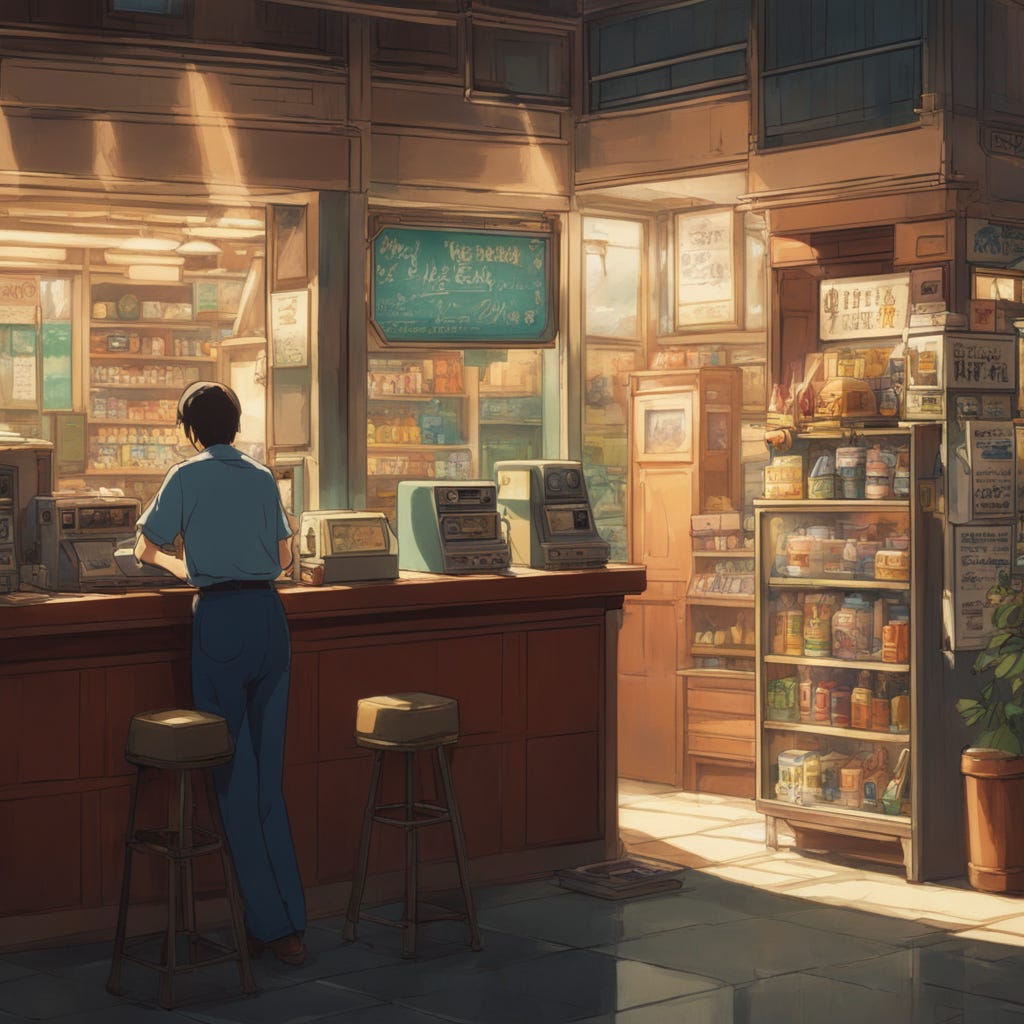 Nothing stood out more - at least for me - than the idea of the radio. The sound coming from behind the counter is a constant, but it’s left to our ears to imagine what everyone is listening to.